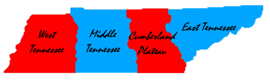 - Topography: Rugged country in the east; Great Smoky Mountains of the Uankas; low ridges in the Appalachian Valley; the flat Cumberland Plateau; slightly rolling terrain and knobs of the interior low plateau, the largest region; Eastern Gulf coastal plain to the west, laced with meandering streams; Mississippi alluvial plain, a narrow strip of swamp and flood plain in the extreme west.